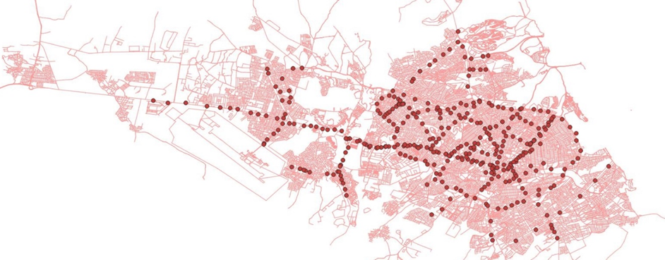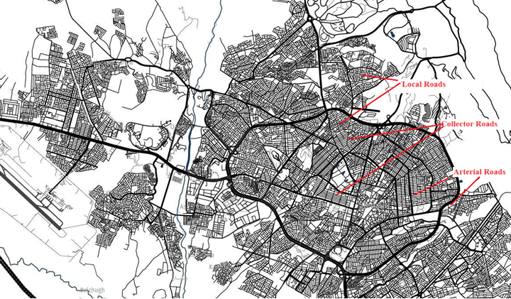 وەکوو ڕوونە ڕادەی یەکگرتنی كۆی شەقامەکان لە نەخشەی شارێکدا دەتوانێت زۆر شت دەربارەی ڕەفتاری دانیشتووانەکەی ئاشکرا بکات. لەبەر ئەوە بۆ ڕاست و دروستیى لێکۆڵینەوەکە نەخشەی شارەکەمان بە بەرنامەی (دێپس-ماپ) شى کردەوە؛ بەپێی بەرەنجامی ئەوە پرۆگرامە، ئەو شارانەی کە تۆڕەکانی شەقامی زۆر یەکگرتوویان هەیە، بە شێوەیەکی گشتی دەستپێڕاگەیشووترین و بەیەکەوەبەستراوترین شەقامەکانیان بە درێژاییی هێڵە سوور و زەردەکان نیشان دەدەن. بەدوای ئەمانەدا هێڵە سەوز و شینەکان دێن کە دەستپێڕاگەیشتنێکی کەمتر پێشکەش دەکەن. ئەم لێکۆڵینەوەیەى شاری سلێمانى بریتی بوو لە پشکنینی فرێکوێنسیی گۆڕانی ئاراستەیی لەو ڕێگایانەی لەگەڵ شەقامەکانی دیکەدا دەبڕدرێن. بۆمان دەرکەوت کە لە تۆڕى شەقامەکاندا دەستڕاگەیشتووترین و بەیەکەوەبەستراوترین شەقامەکان تەنیا لە هێڵی سوور تێپەڕین جێگیر کراون. هێڵە سوور و زەردەکانی نەخشەکە ئاماژەن بۆ ئەو ڕێگایانەی کە گۆڕانکاریی ئاراستەیان کەمترە، ئەمەش دەبێتە هۆی یەکگرتنی بەرزتر لە ناوچە بازرگانییە سەرەکییەکان. هێڵە سەوز و شینەکانیش ئاماژە بەو ناوچانە دەکەن کە ئەگەری دەستپێگەیشتنیان هەیە، وەک لەم شێوەی خوارەوەدا وێنا کراوە: